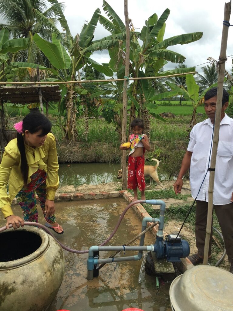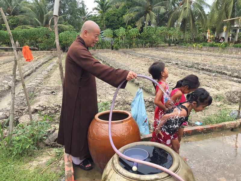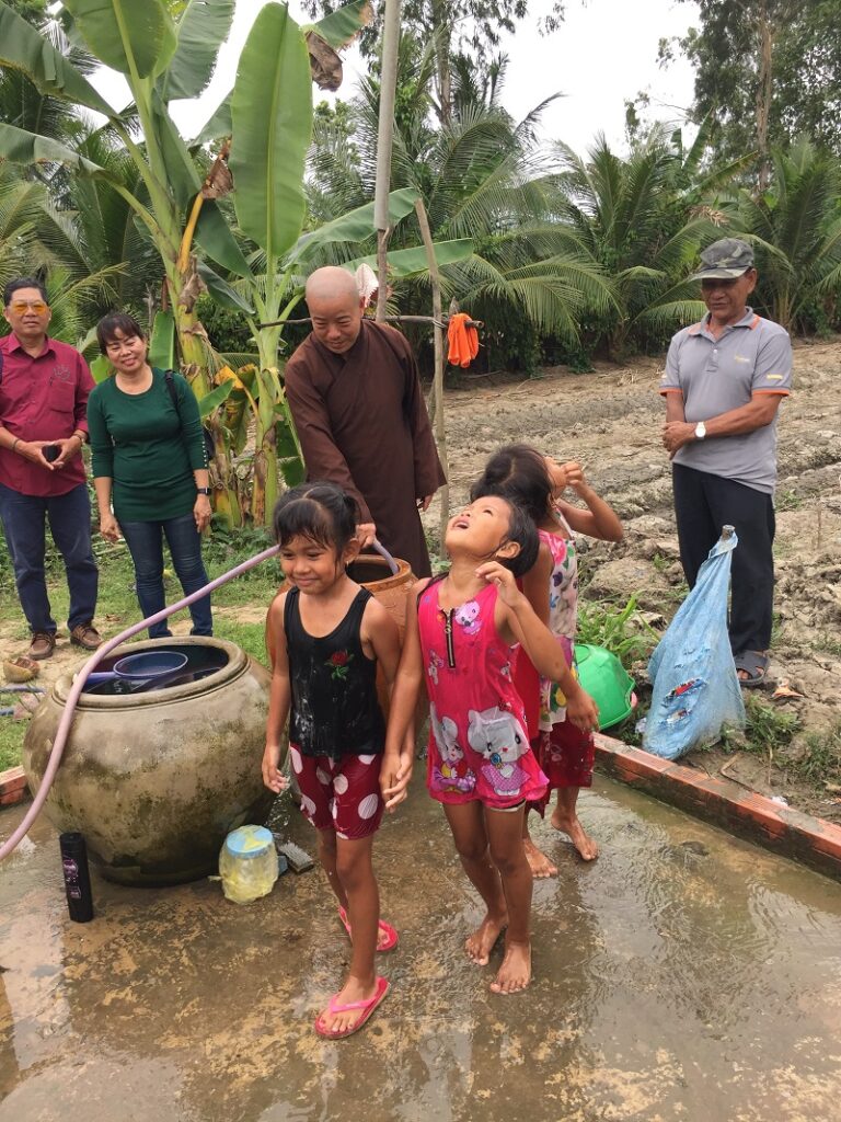 Our local contact for the project was a local Buddhist monk who told us of the need for the water wells. The children are enjoying the fresh water bath!